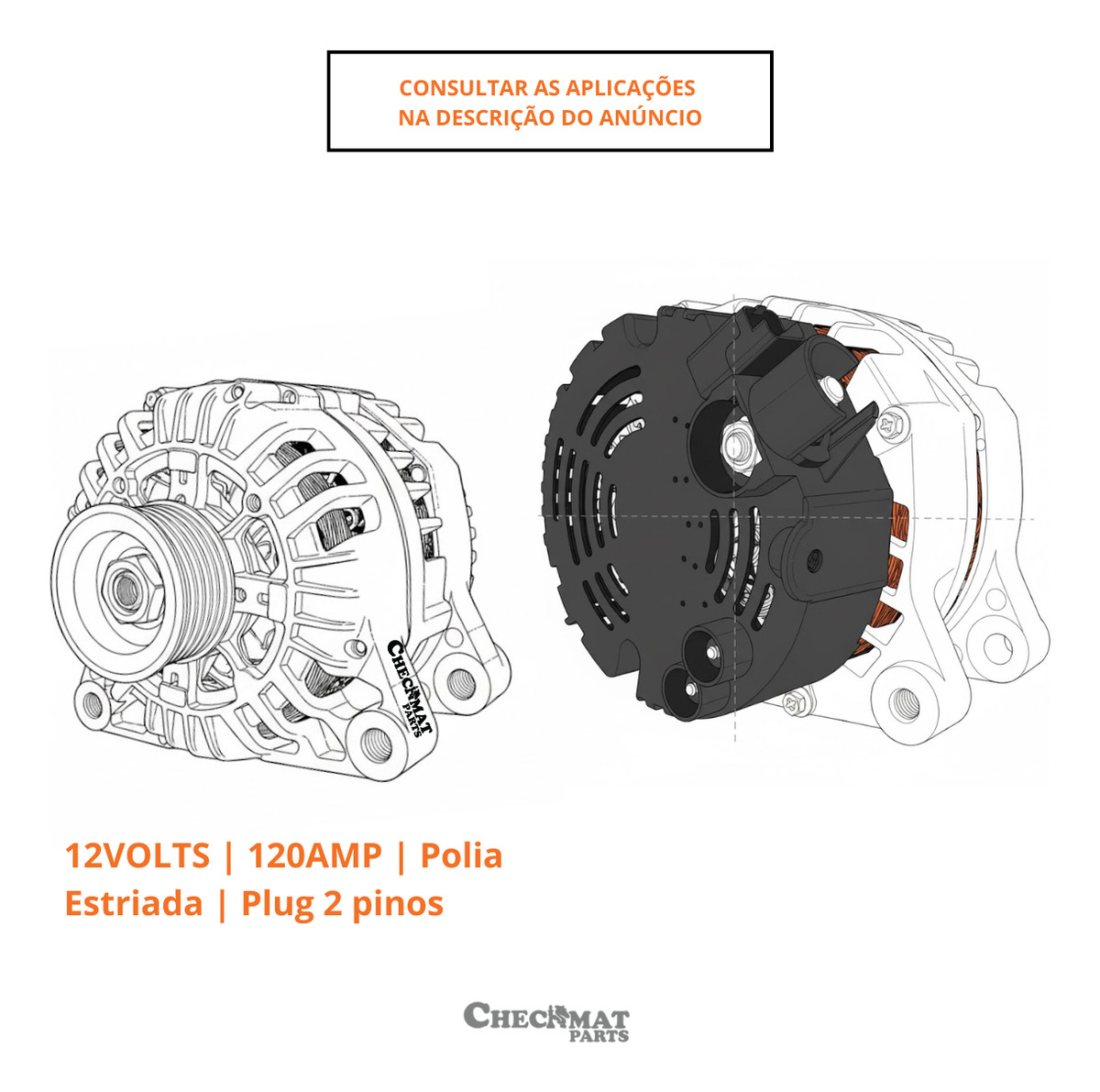 12VOLTS | 120AMP | Polia Estriada | Plug 2 pinos