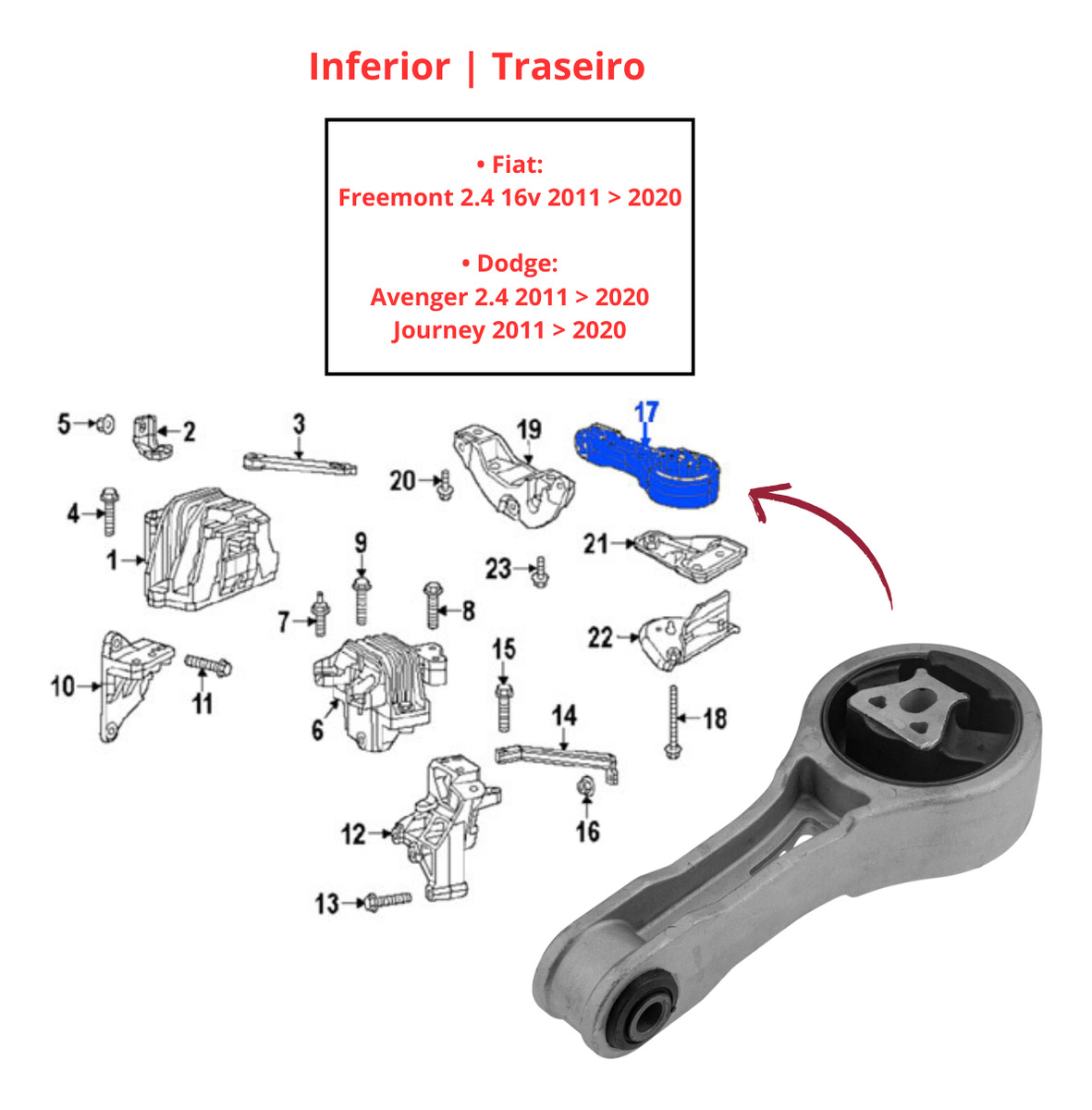 01 – Coxim do Câmbio Inferior Traseiro COMPATÍVEL COM Dodge Avenger Journey & Fiat Freemont