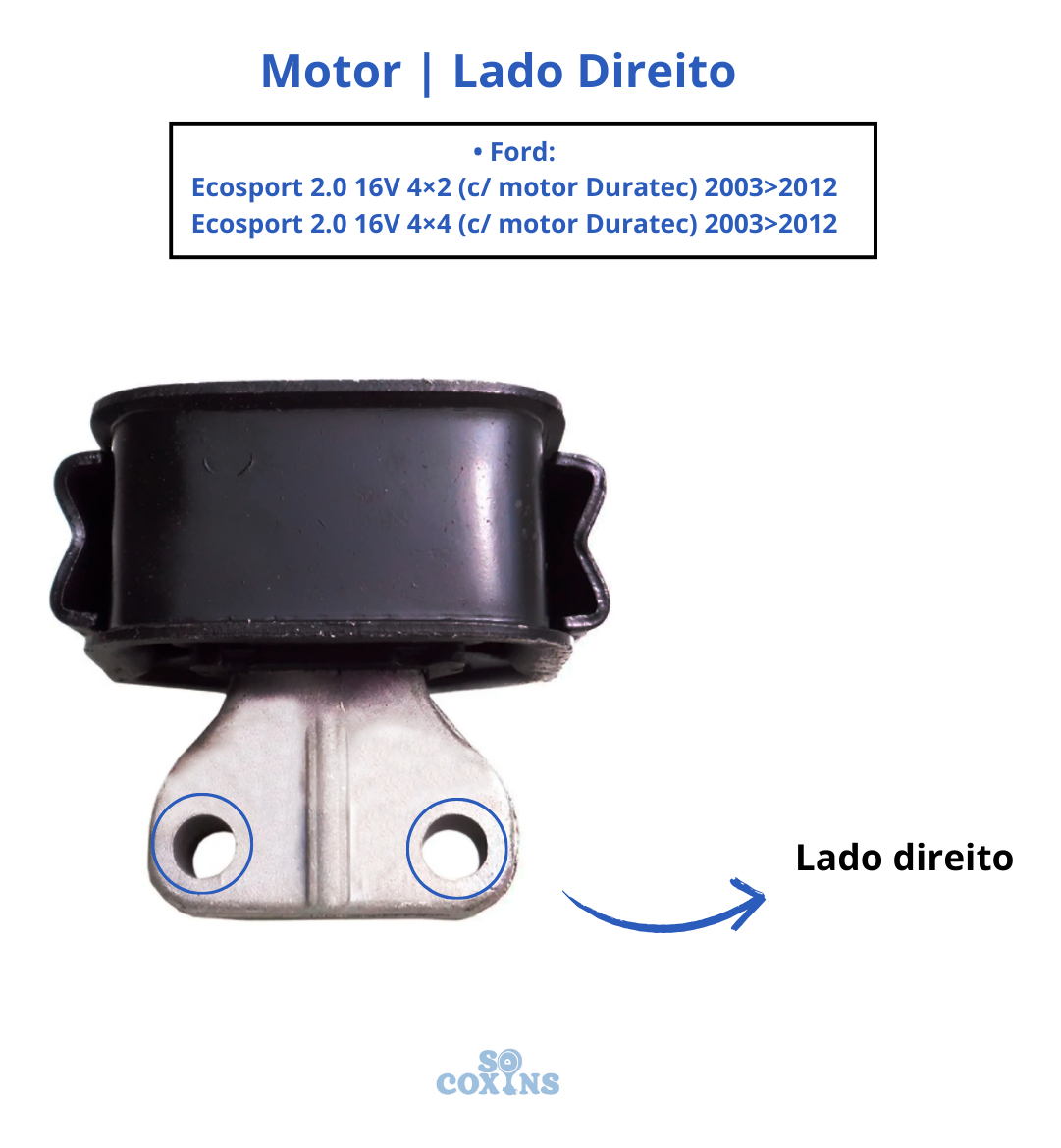 01 — Coxim do Motor Lado Direito COMPATÍVEL COM Ford Ecosport 2.0 Duratec