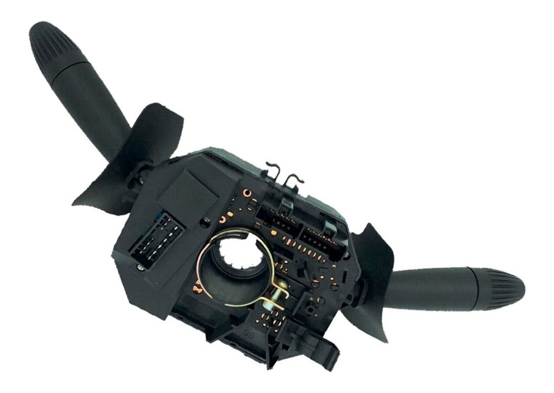 Branca | Com: acionamento da lanterna | farol alto e baixo | lampejo | limpador de para-brisa com duas velocidades | temporizador | lavador
