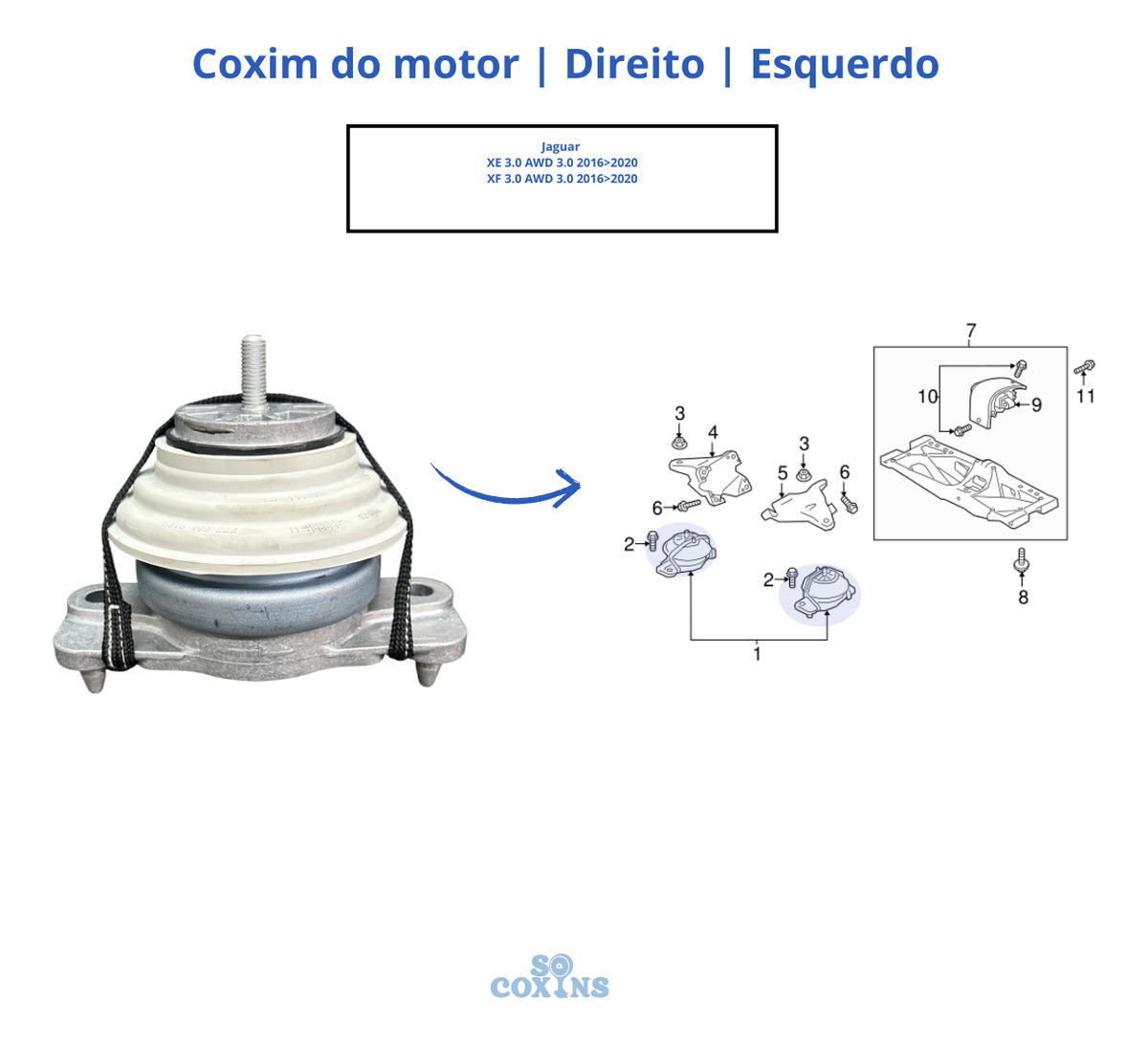 01 –Coxim do motor LD/LE Xe Xf 3.0 2016 2017 2018 2019 2020