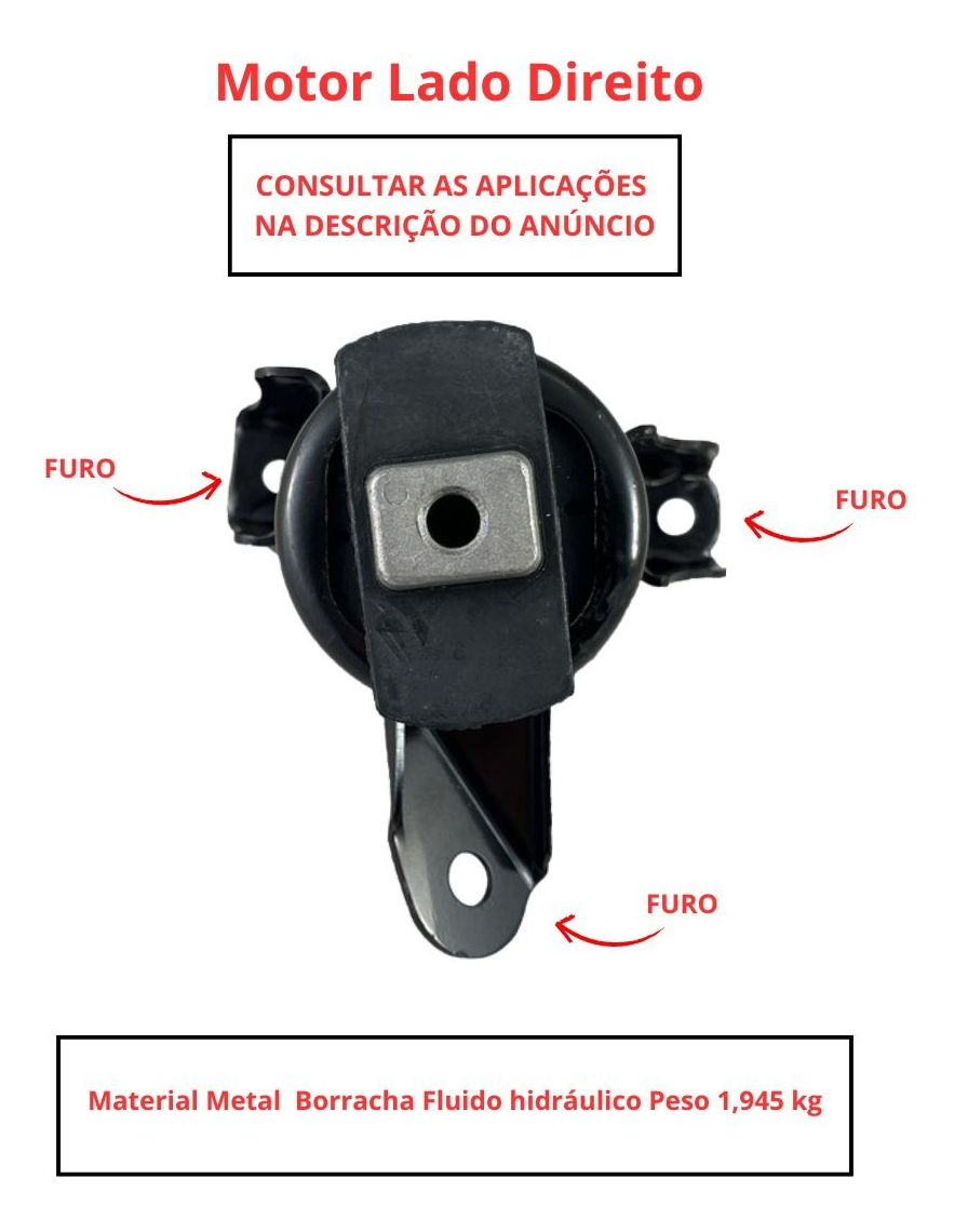 Especificação: Motor Lado Direito | Material Metal Borracha | Fluido hidráulico | Peso 1,945 kg