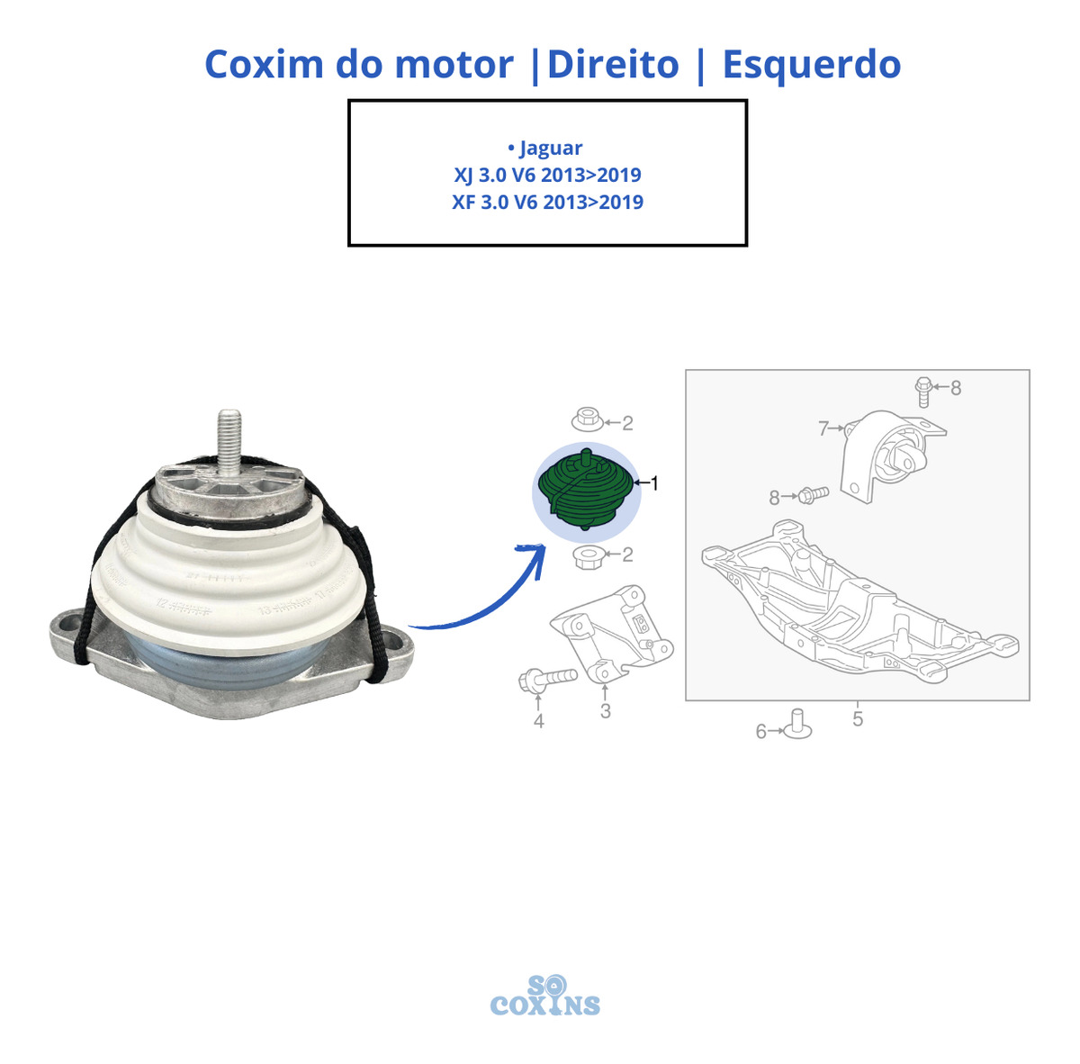 01 – Coxim motor XJ XF 3.0 V6 2013 2014 2015 2016 2017 2018 2019