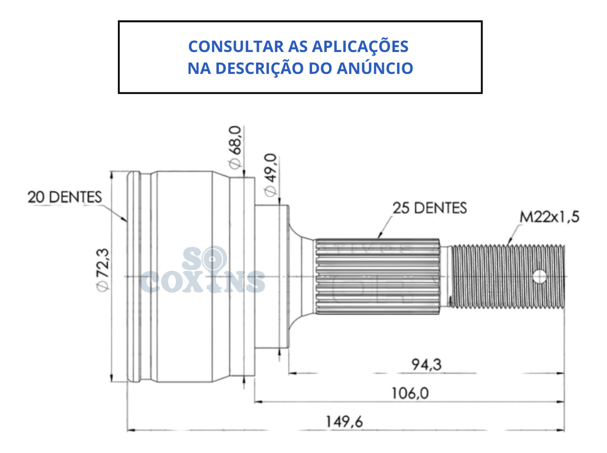Especificação: Lado Direito e Esquerdo | 20 Dentes Interno | 25 Dentes Externo | Posição do anel – ML