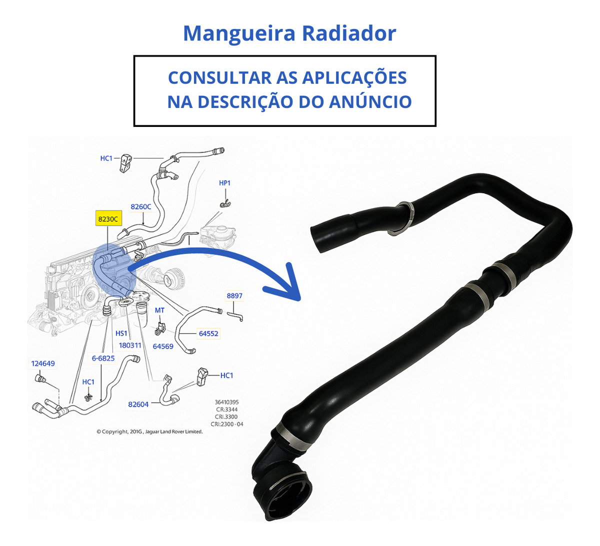 01 – Mangueira Superior Do Radiador Evoque Xc60 2.0 2011 A 2019